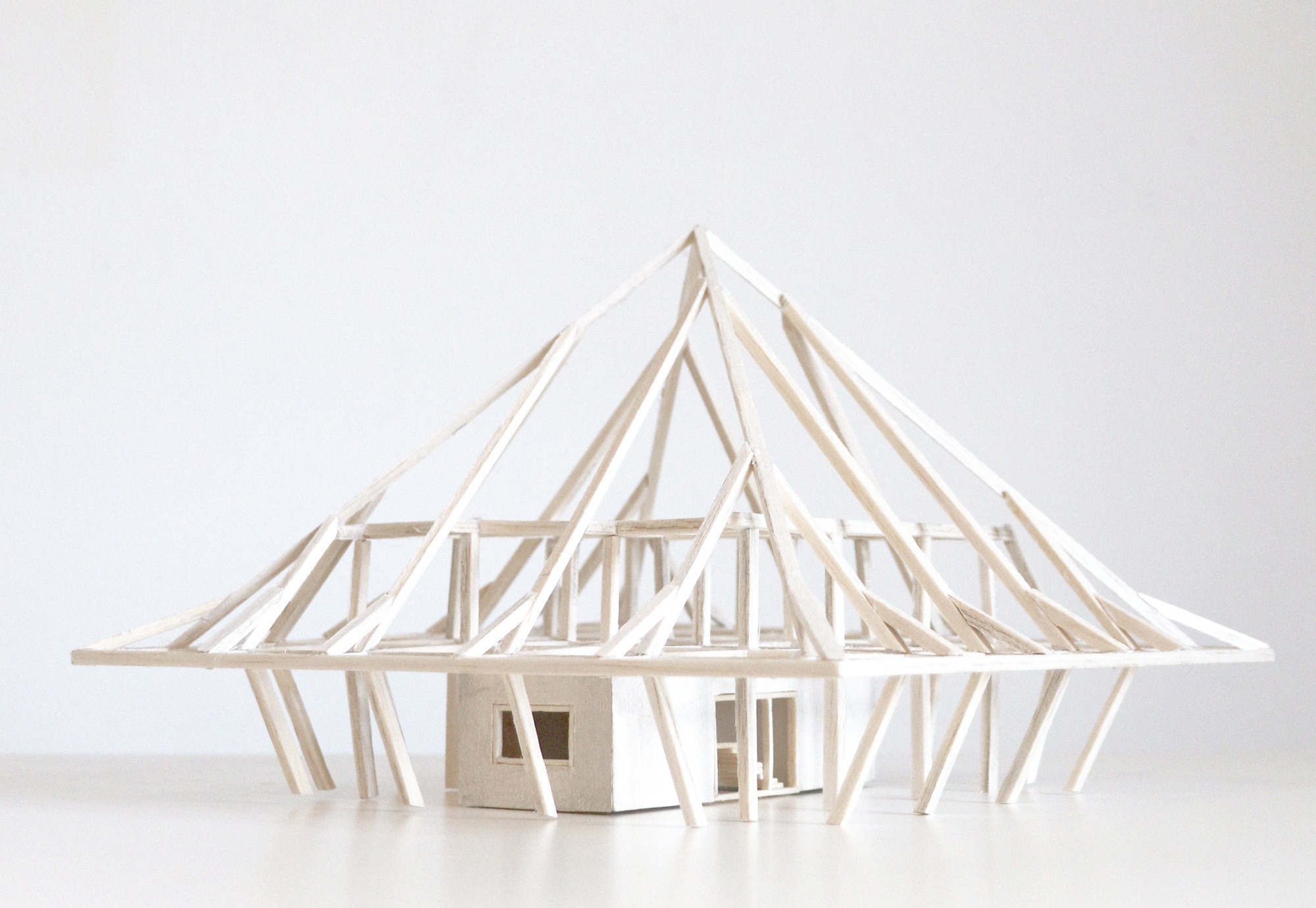 Architektura regionalna otaczających miejscowości jest bardzo zróżnicowana, z silnym akcentem na dach jako dominujący element formy budynku. Charakterystyczną cechą tych dachów jest zmiana nachylenia w ich geometrze. W tym projekcie odwołuję się do lokalnej geometrii dachów i wyolbrzymiam ją, zamieniając ją w karykaturę. Staje się to centralnym tematem projektu.